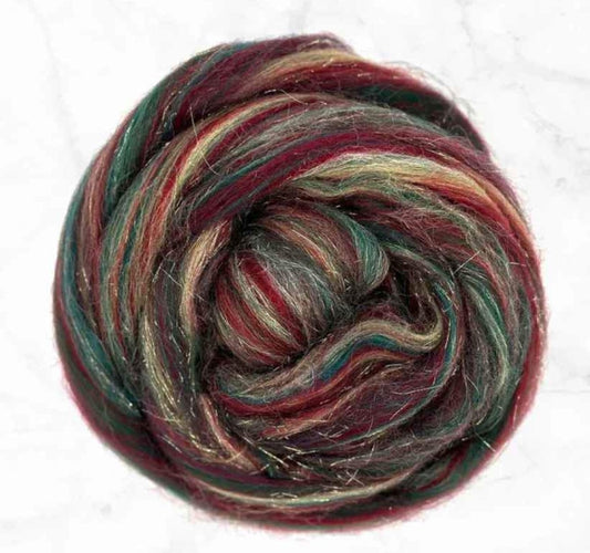 Pretty Lights of Christmas Shetland Wool and Sari Silk Roving Wool Fiber