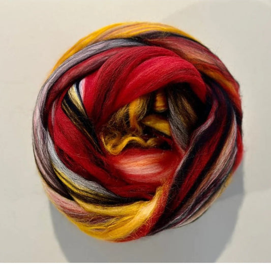Red Admiral Merino Wool Fiber Braid with Streaks of Eri Silk and Bamboo
