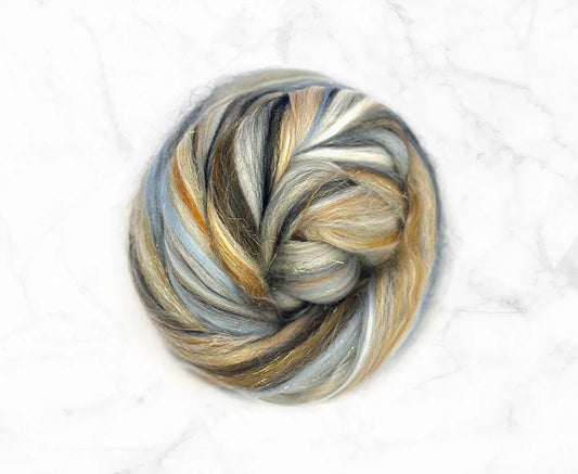 Beautiful Calico Colored Merino Corriedale Bamboo and Alpaca Wool Roving Fiber