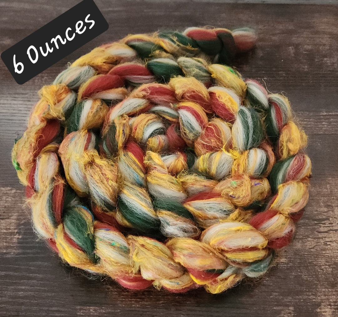 Pretty Lights of Christmas Shetland Wool and Sari Silk Roving Wool Fiber